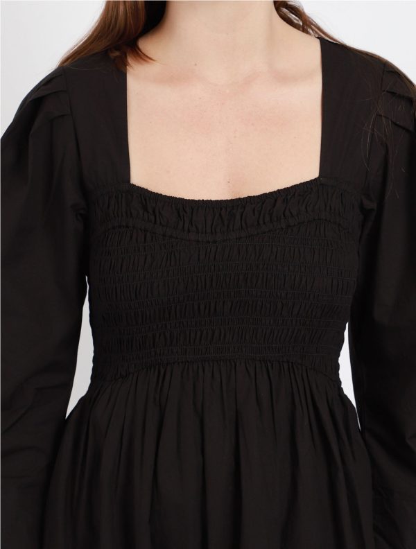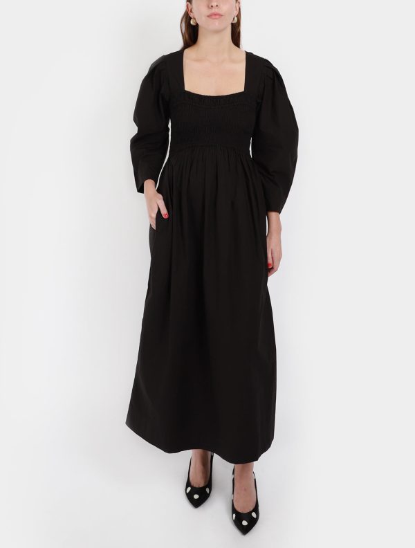 Cotton Poplin Open-neck Smock Long Dress